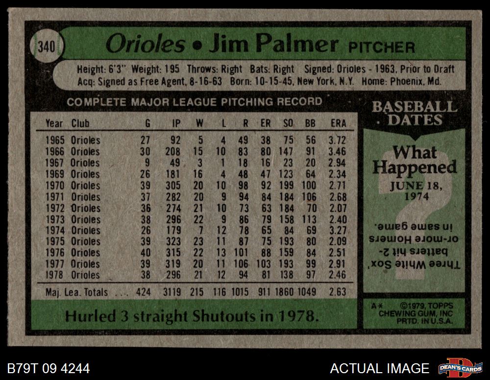 1979 Topps #340 Jim Palmer 4 - VG/EX