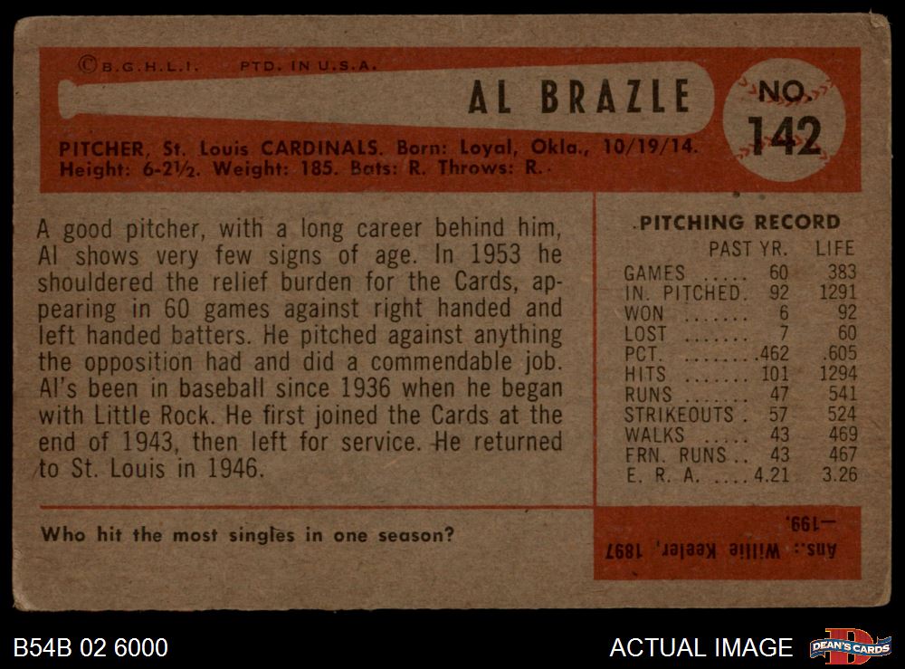 1954 Bowman #142 Al Brazle 2.5 - GD+