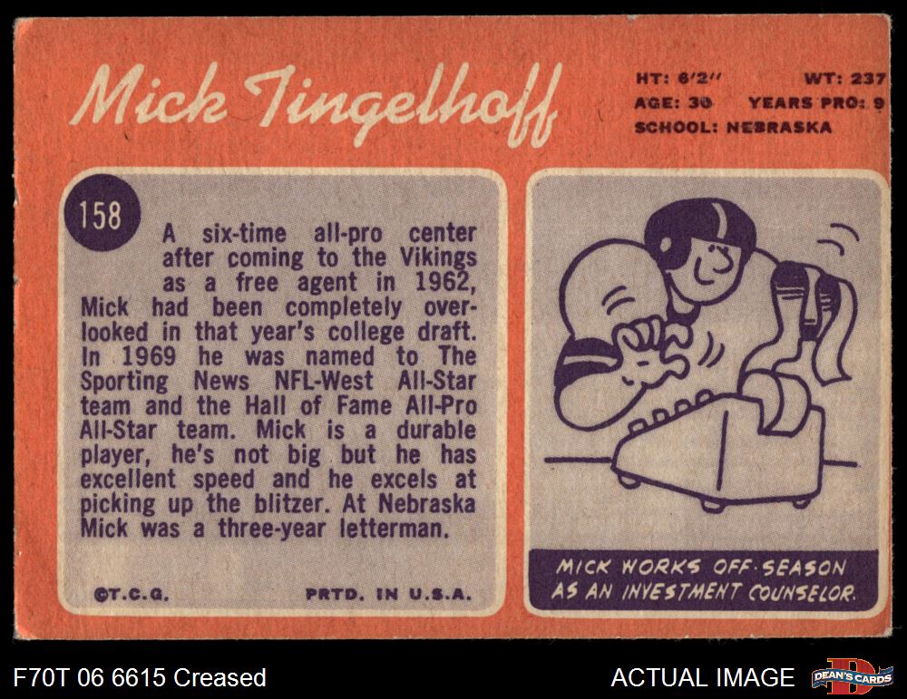 1970 Topps #158 Mick Tingelhoff 2 - GOOD