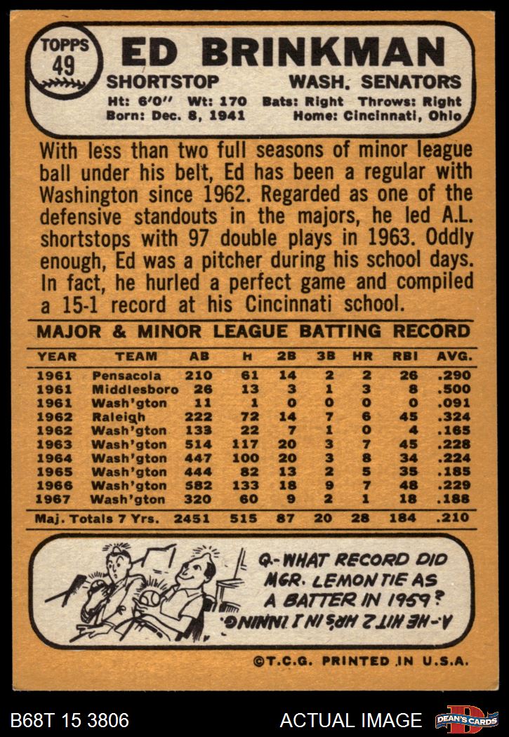 1968 Topps #49 A Ed Brinkman 6 - EX/MT