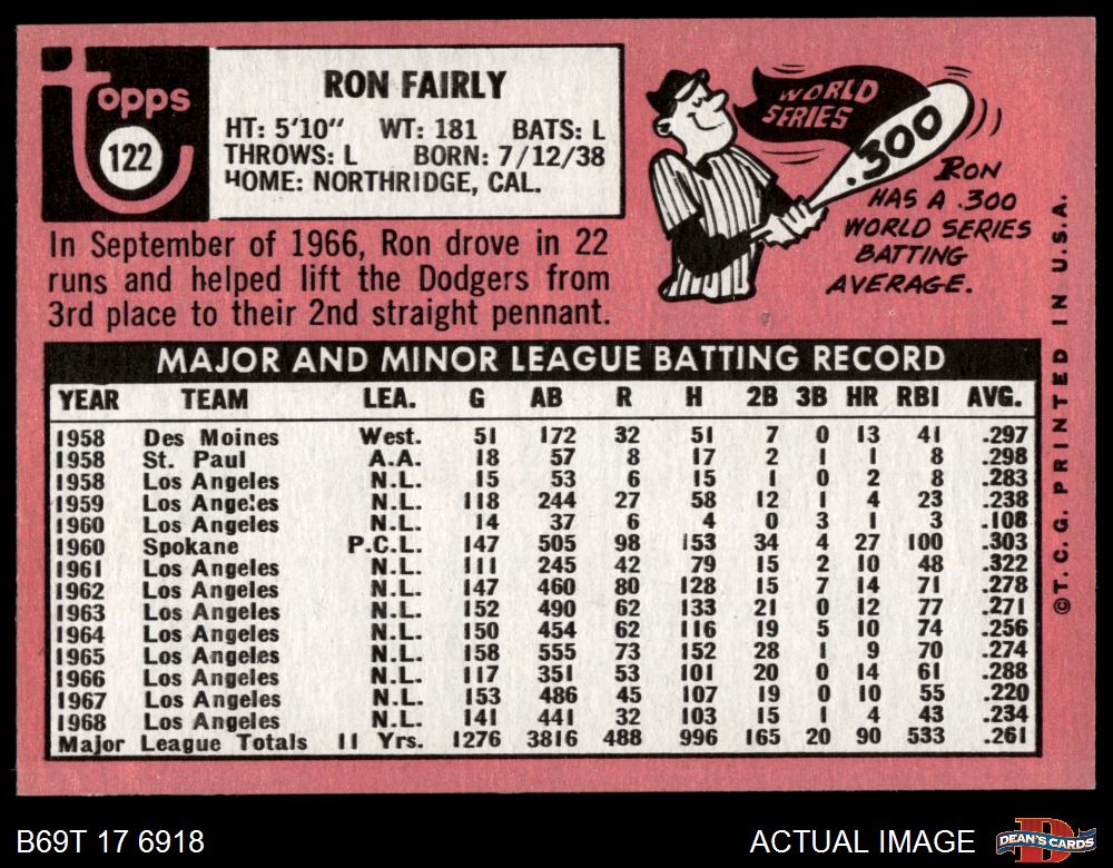 1969 Topps #122 Ron Fairly