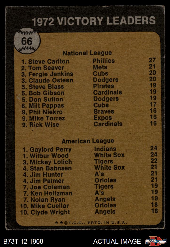 1973 Topps #66 - Steve Carlton / Gaylord Perry / Wilbur Wood Pitching Leaders 2 - GOOD