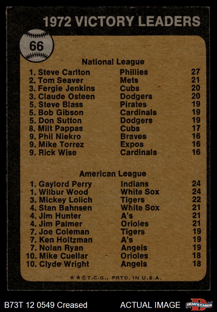 1973 Topps #66 - Steve Carlton / Gaylord Perry / Wilbur Wood Pitching Leaders 3 - VG