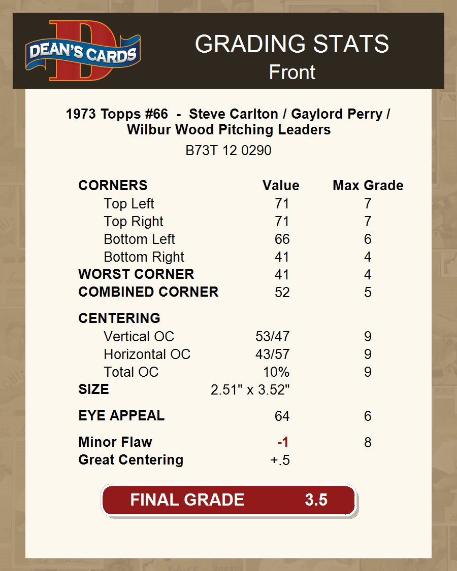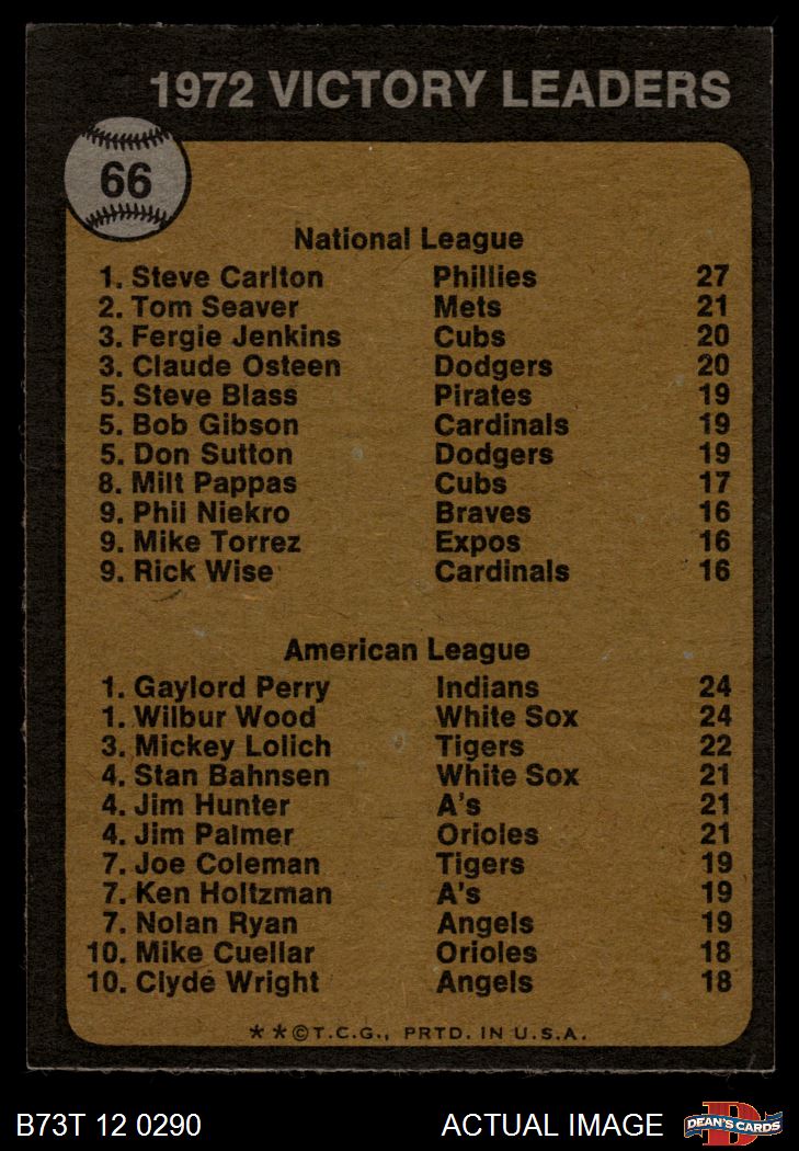 1973 Topps #66 - Steve Carlton / Gaylord Perry / Wilbur Wood Pitching Leaders 3.5 - VG+