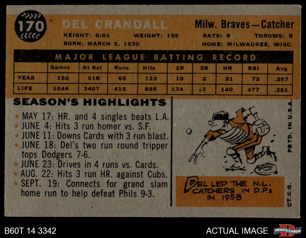 1960 Topps #170 Del Crandall 4.5 - VG/EX+