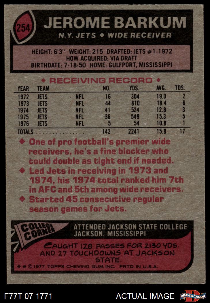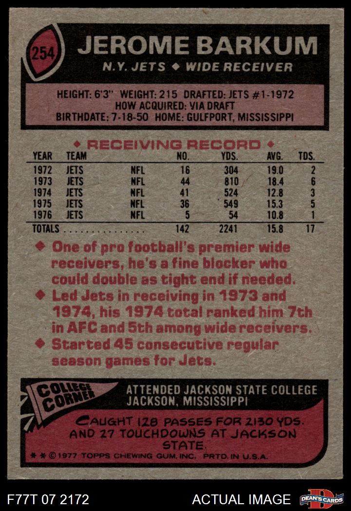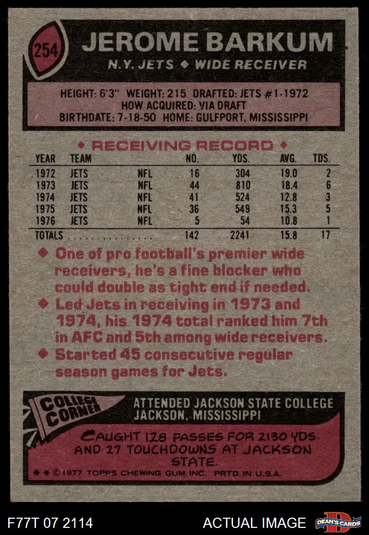 1977 Topps #254 Jerome Barkum