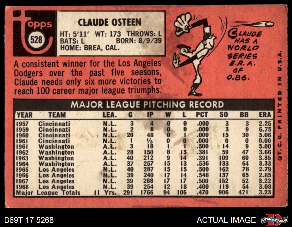 1969 Topps #528 Claude Osteen 2 - GOOD