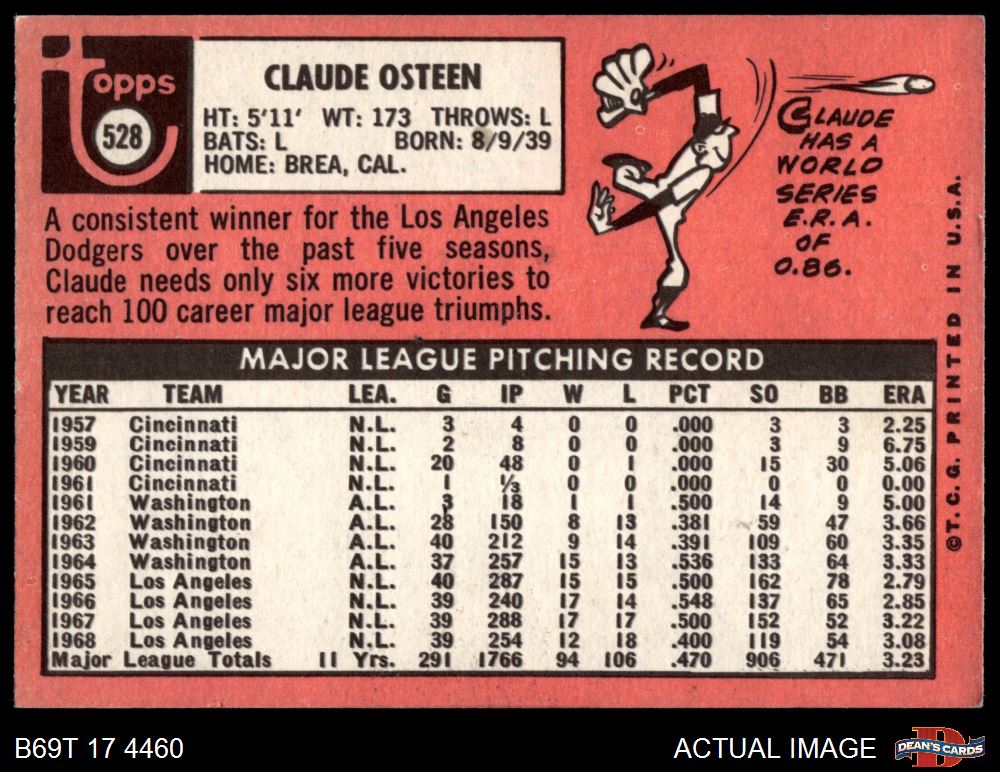 1969 Topps #528 Claude Osteen 6 - EX/MT