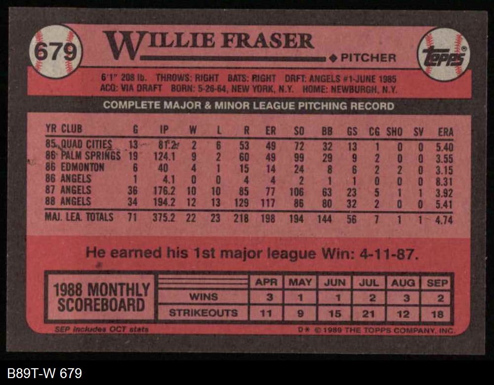 1989 Topps #679 Willie Fraser