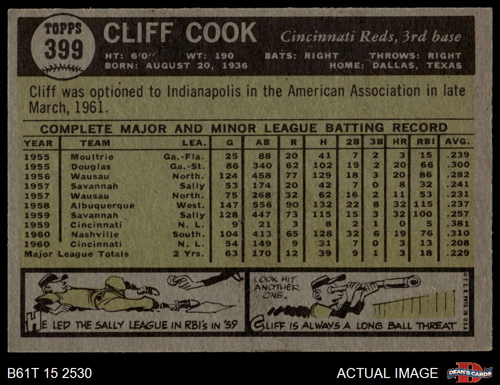 1961 Topps #399 Cliff Cook 4 - VG/EX