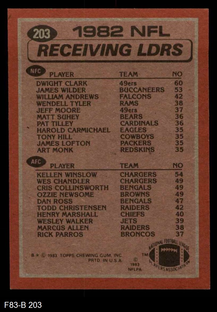1983 Topps #203 - Dwight Clark / Kellen Winslow Sr. Receiving Leaders 8 - NM/MT
