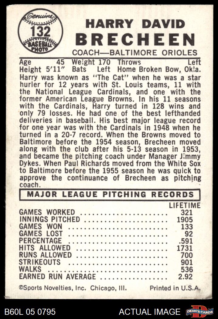 1960 Leaf #132 Harry Breechen 2 - GOOD