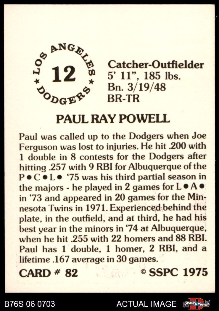 1975 SSPC #82 Paul Powell 8 - NM/MT