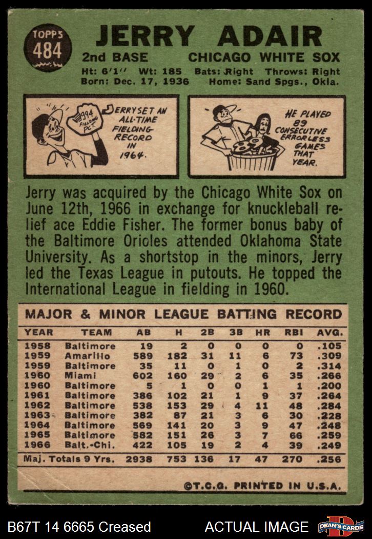 1967 Topps #484 Jerry Adair 2 - GOOD