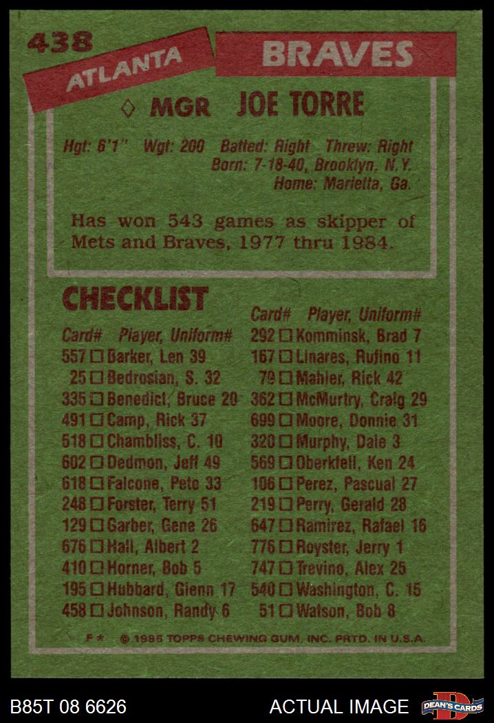 1985 Topps Baseball Cards (11,228 available)1985 Topps Braves (423 available)