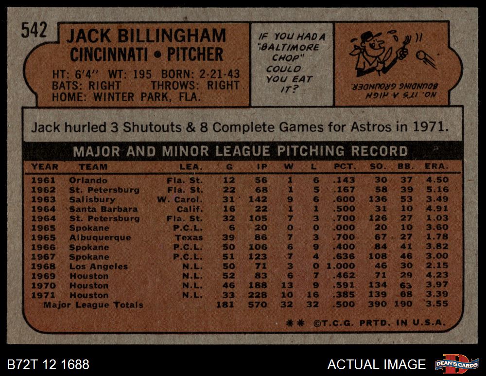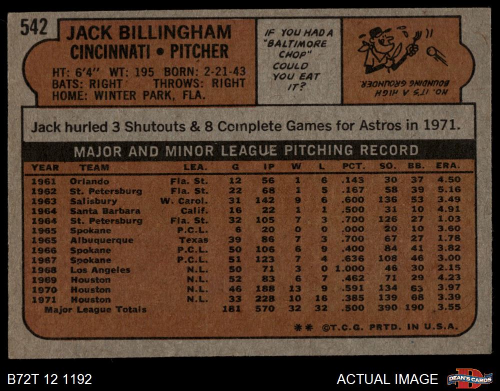 1972 Topps #542 Jack Billingham 5 - EX
