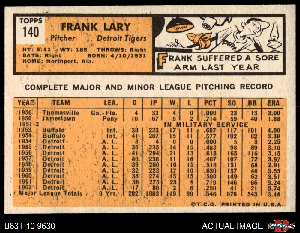 1963 Topps #140 Frank Lary 4 - VG/EX