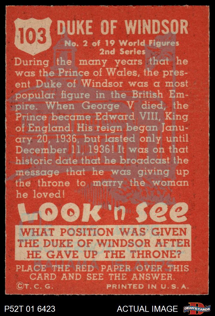 1952 Topps Look 'N See #103 Duke of Windsor 5 - EX