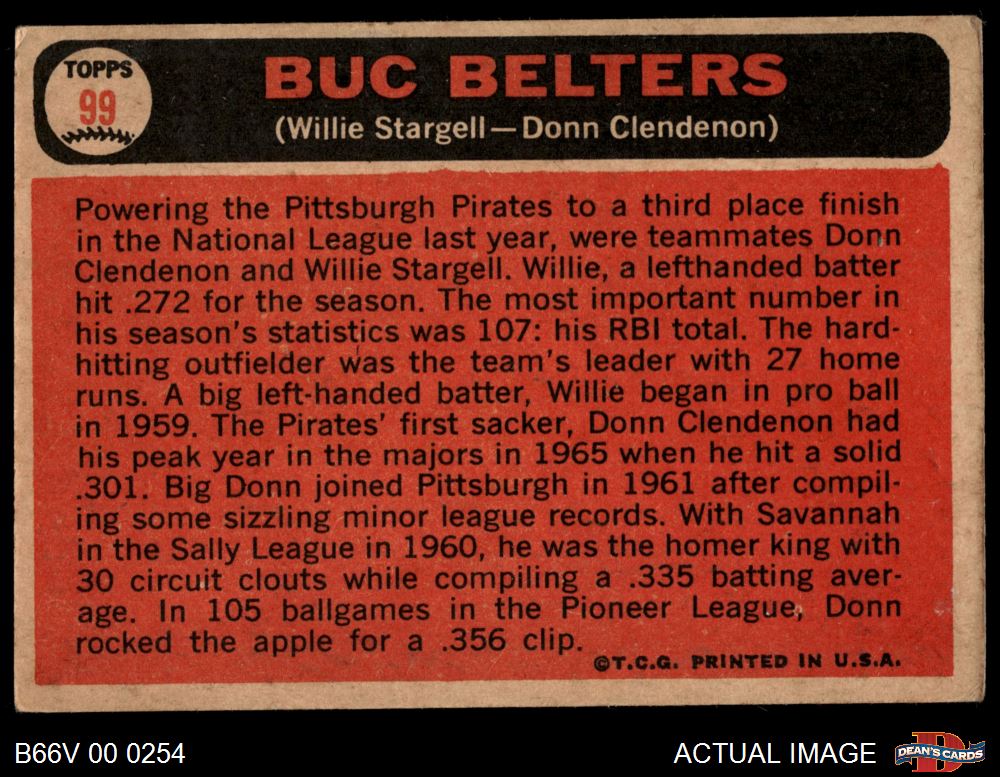 1966 Topps Venezuelan #99 - Willie Stargell / Donn Clendenon Buc Belters 3 - VG