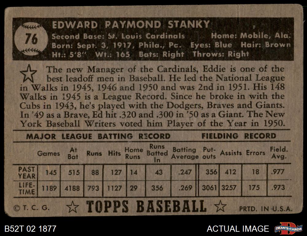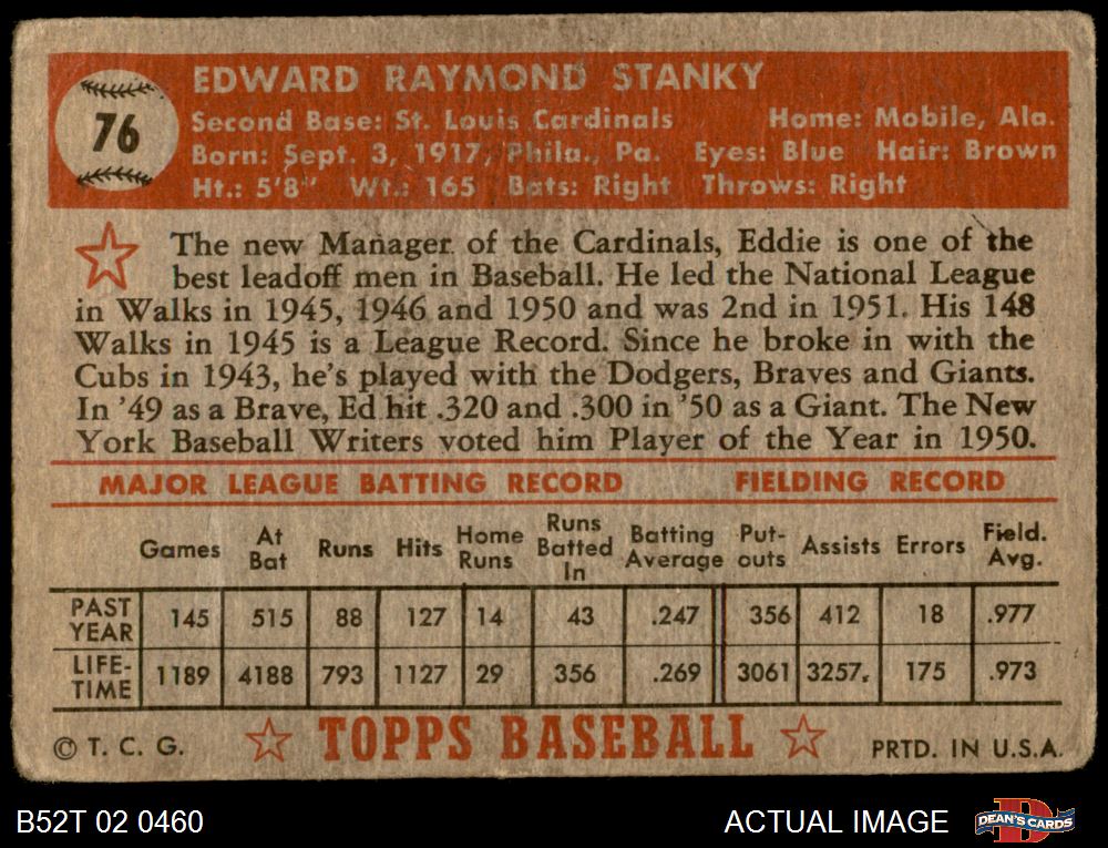 1952 Topps Baseball Cards (2,331 available)1952 Topps Cardinals (275 available)