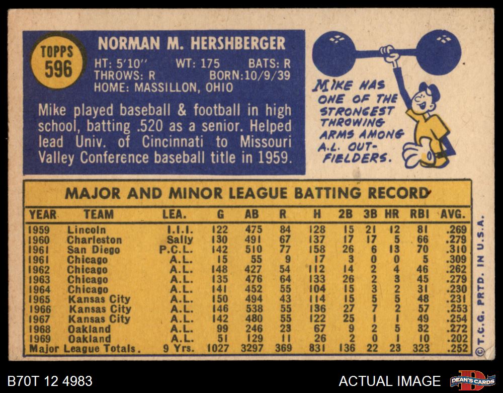 1970 Topps #596 Mike Hershberger 4 - VG/EX