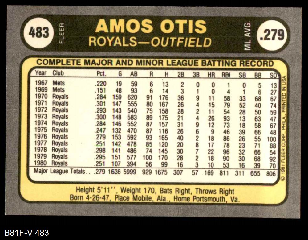 1981 Fleer #483 Amos Otis 8 - NM/MT