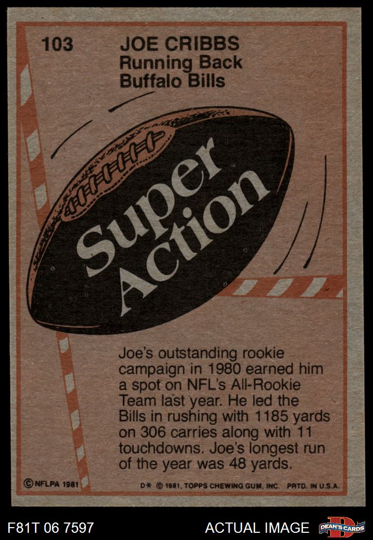 1981 Topps #103 - Joe Cribbs Super Action 5 - EX