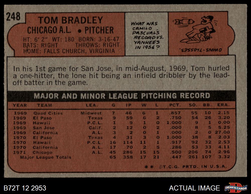 1972 Topps #248 Tom Bradley 3 - VG