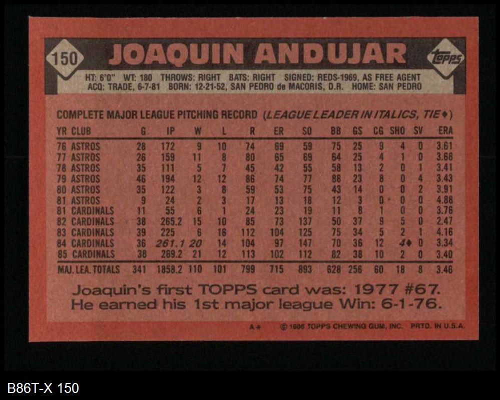 1986 Topps #150 Joaquin Andujar 8 - NM/MT