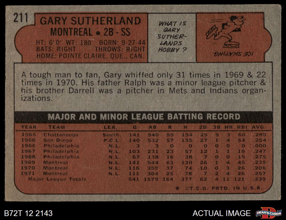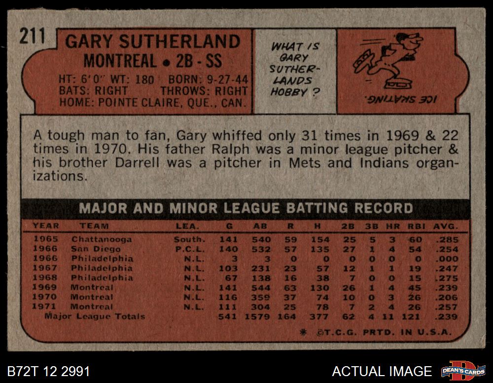 1972 Topps #211 Gary Sutherland 2 - GOOD