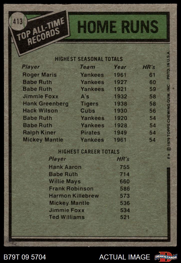 1979 Topps #413 - Roger Maris / Hank Aaron All-Time Record Holders - Home Runs 3.5 - VG+