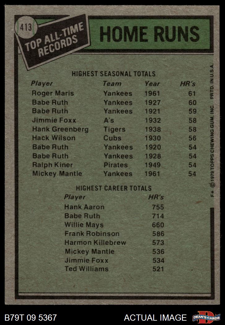 1979 Topps #413 - Roger Maris / Hank Aaron All-Time Record Holders - Home Runs 7.5 - NM+