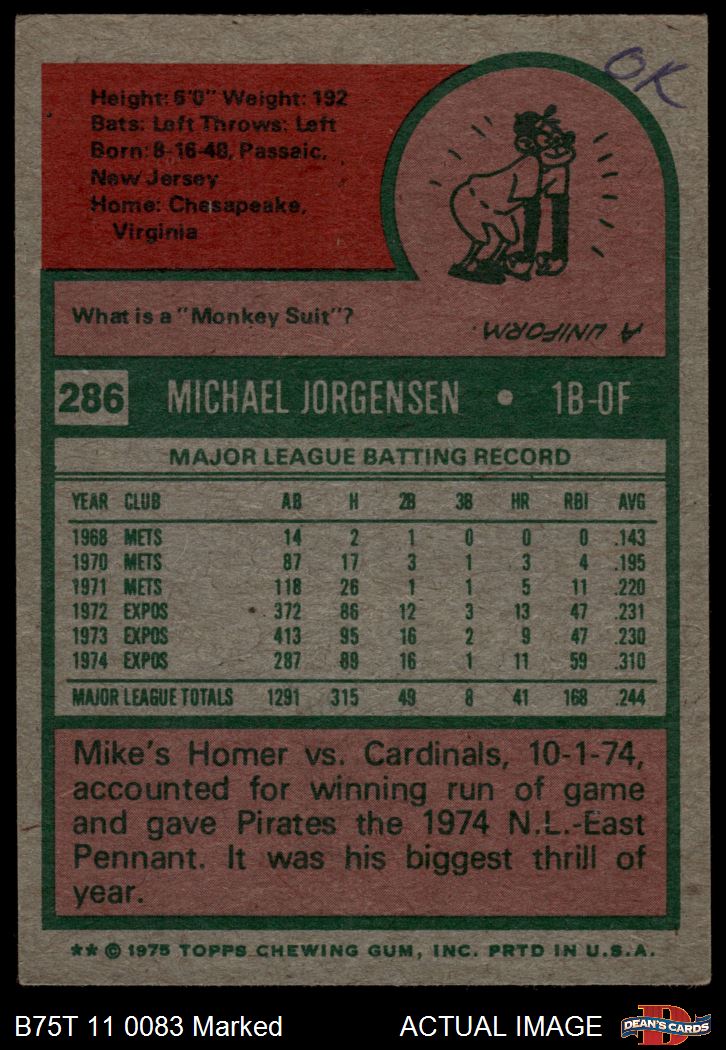 1975 Topps #286 Mike Jorgensen 1.5 - FAIR