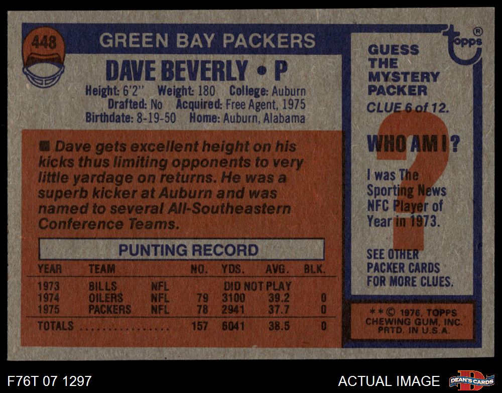 1976 Topps #448 Dave Beverly