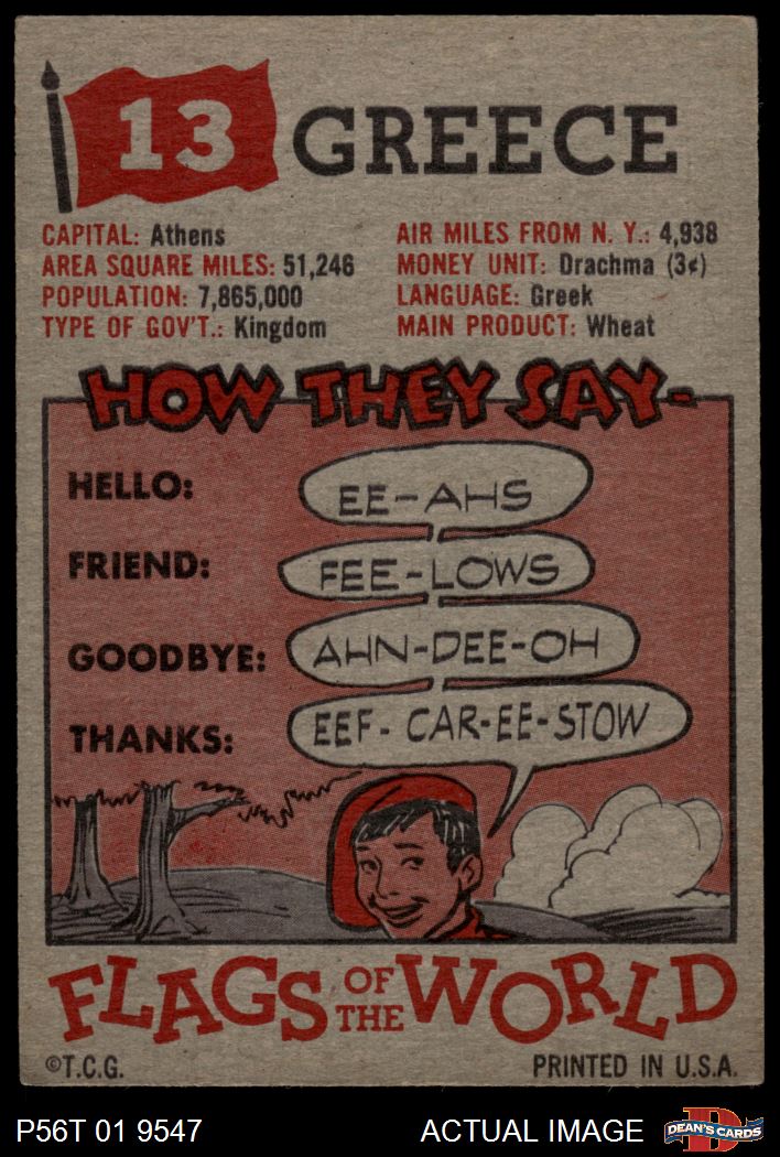 1956 Topps Flags of the World #13 Greece 4 - VG/EX