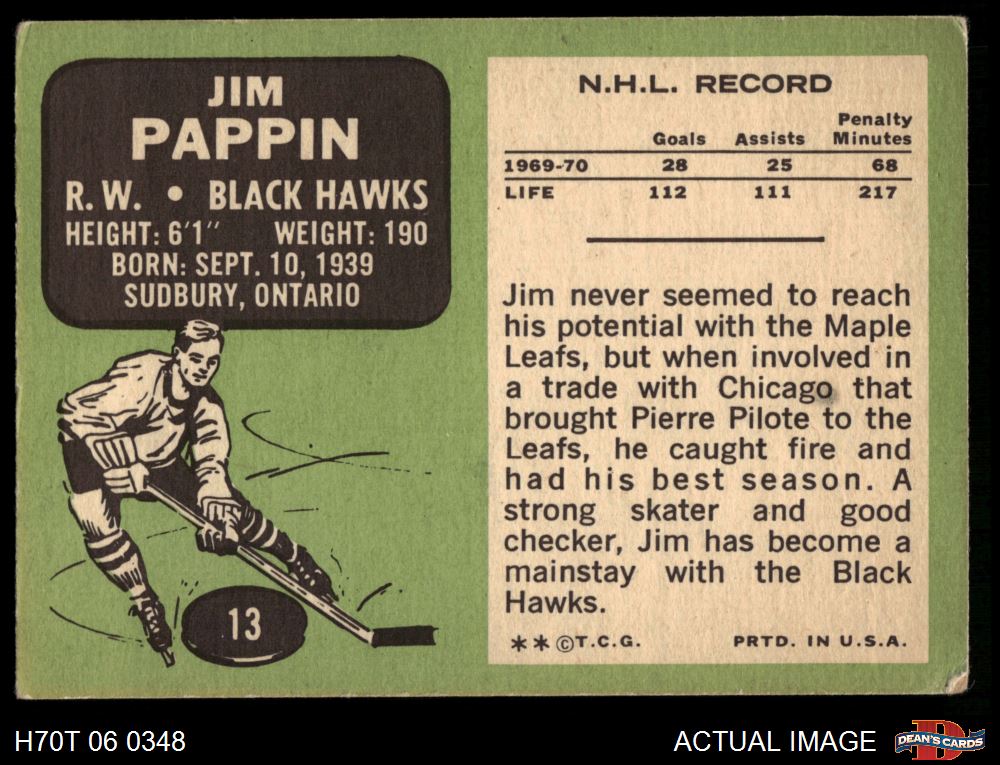 1970 Topps #13 Jim Pappin 2.5 - GD+