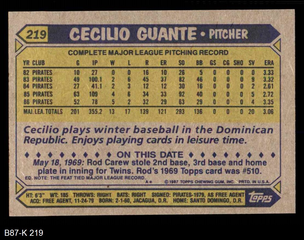 1987 Topps Baseball Cards (5,307 available)1987 Topps Pirates (198 available)