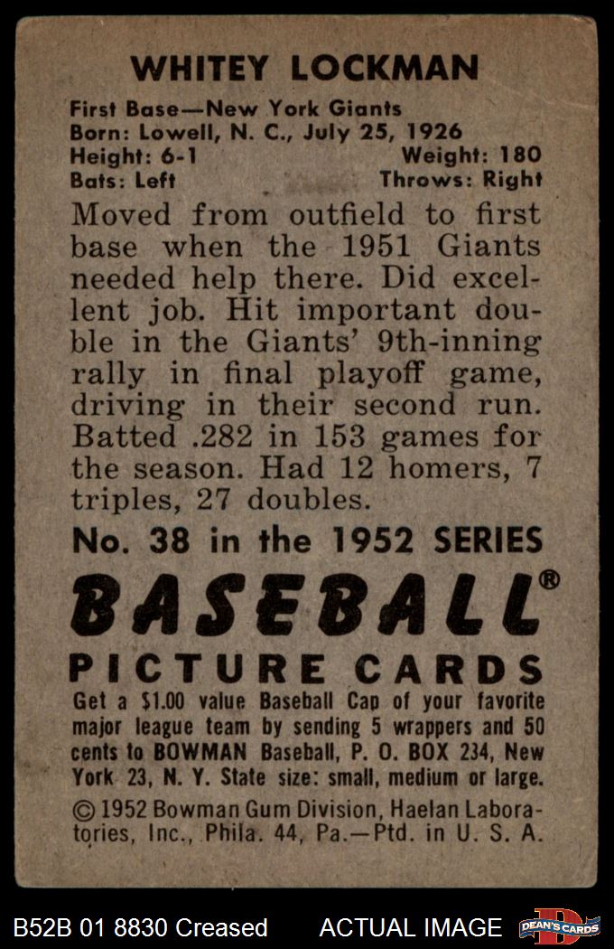 1952 Bowman #38 Whitey Lockman 2 - GOOD