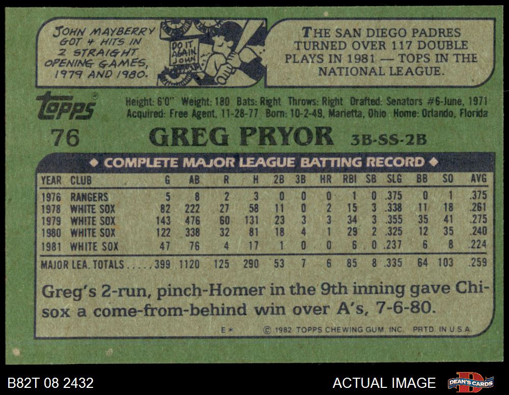 1982 Topps #76 Greg Pryor 6 - EX/MT