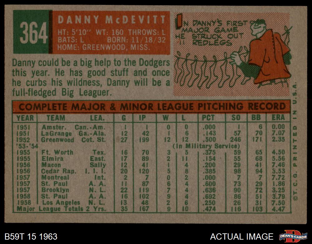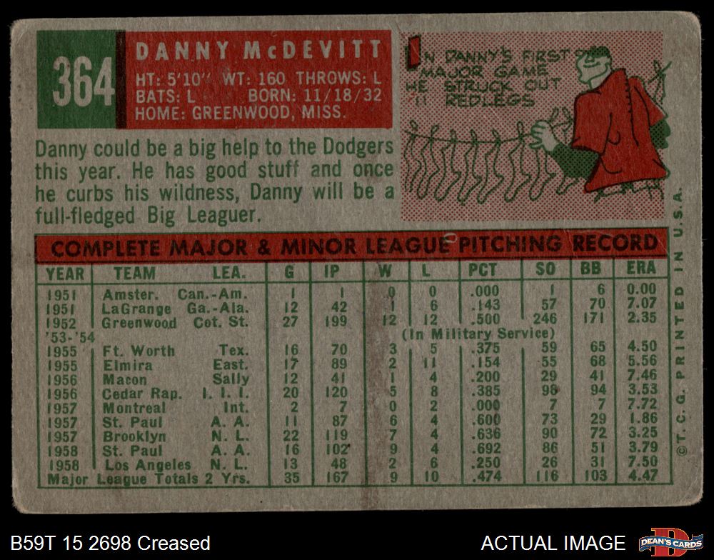 1959 Topps #364 Danny McDevitt