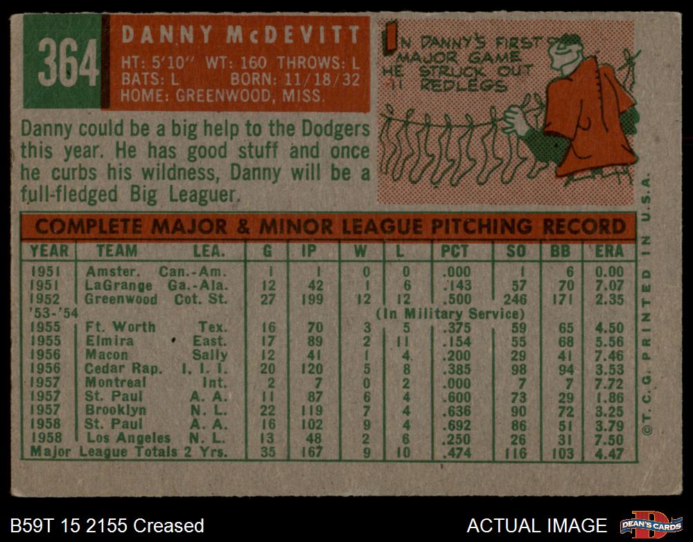 1959 Topps #364 Danny McDevitt 2 - GOOD