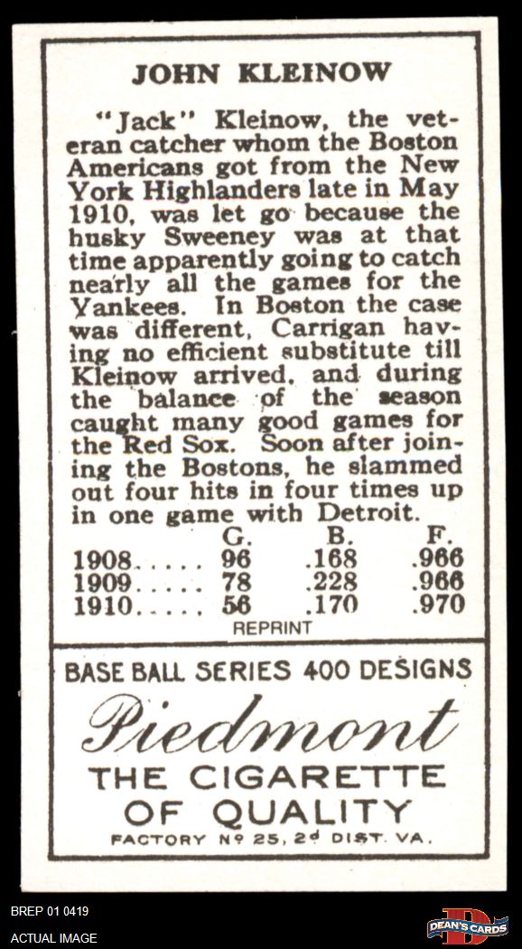 1911 T205 Reprint #102 Red Kleinow