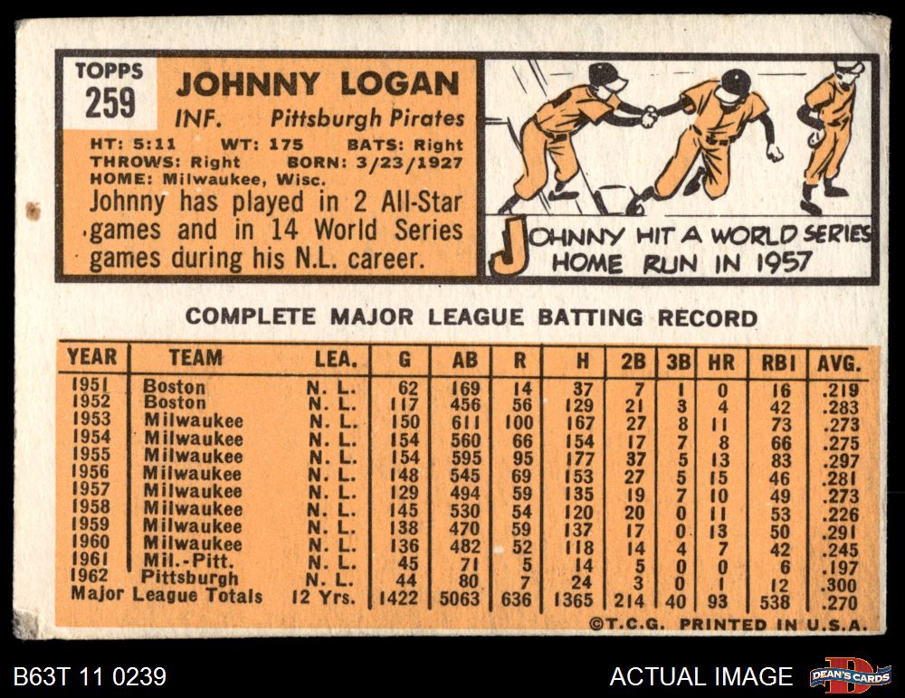 1963 Topps #259 Johnny Logan 2 - GOOD