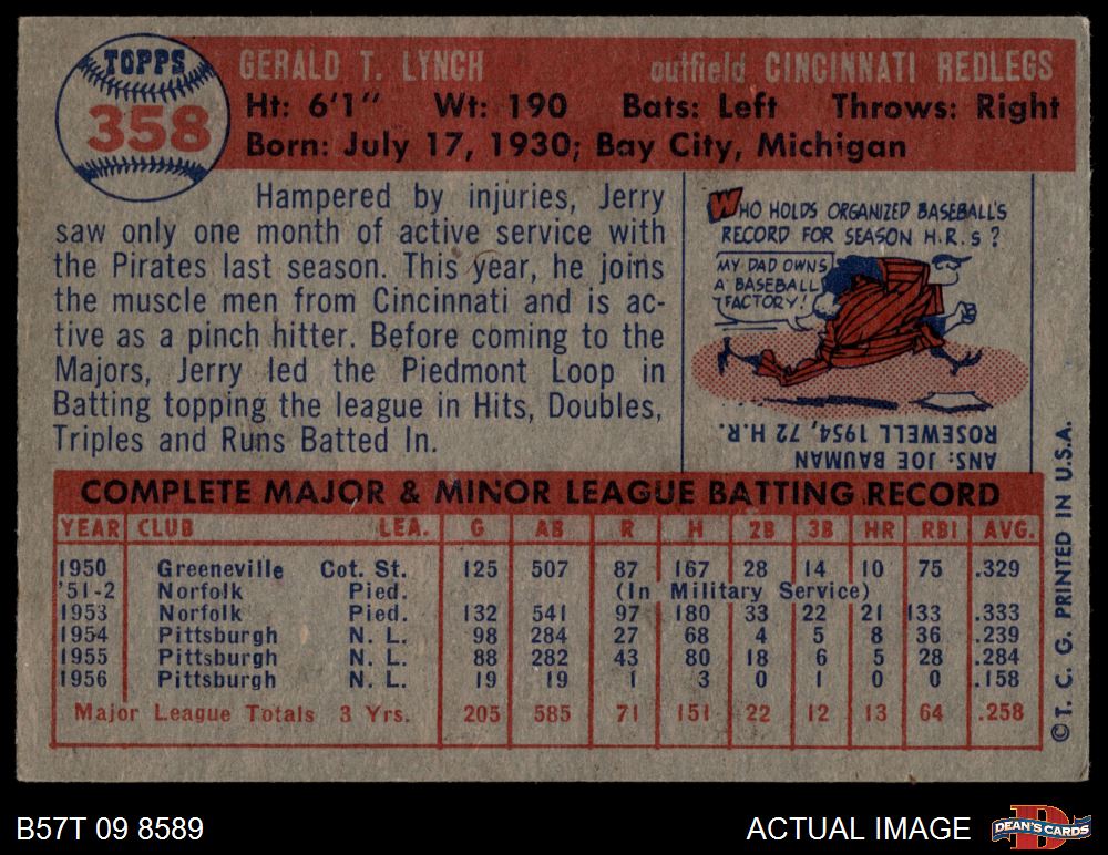 1957 Topps #358 Jerry Lynch 4 - VG/EX