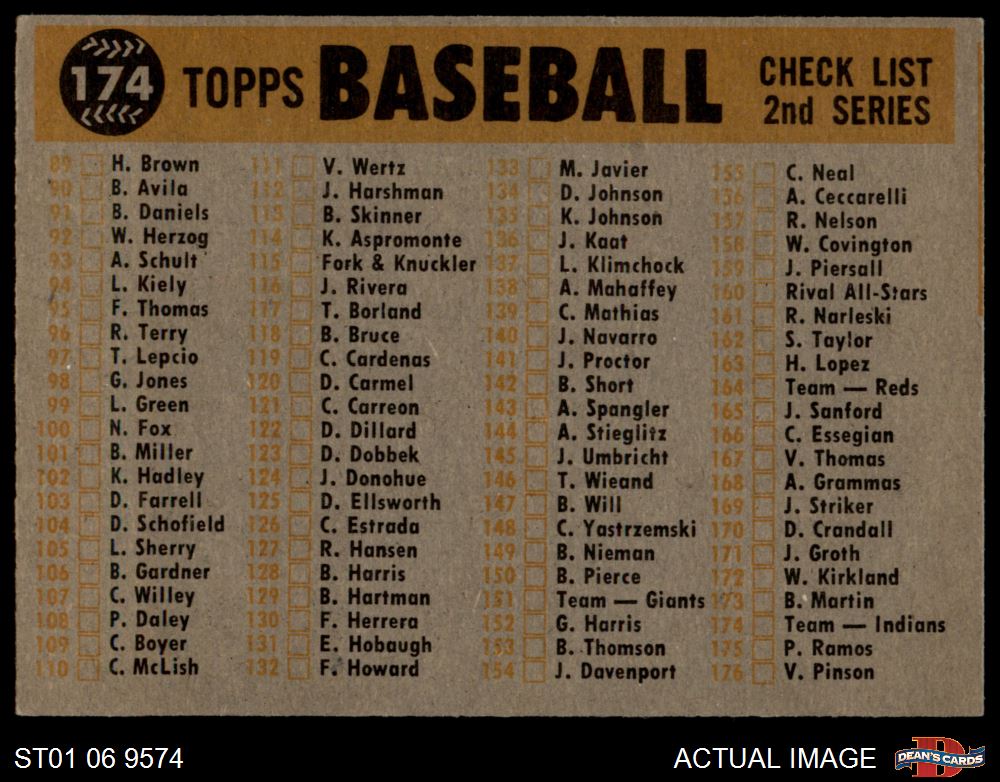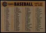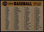 1960 Topps #174 Indians Team Checklist 2 - GOOD
