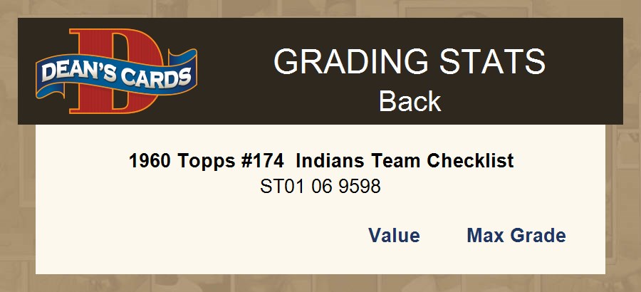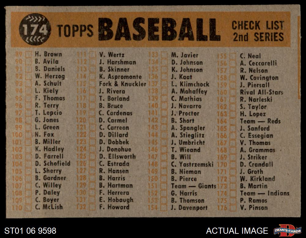 1960 Topps #174 Indians Team Checklist 4 - VG/EX