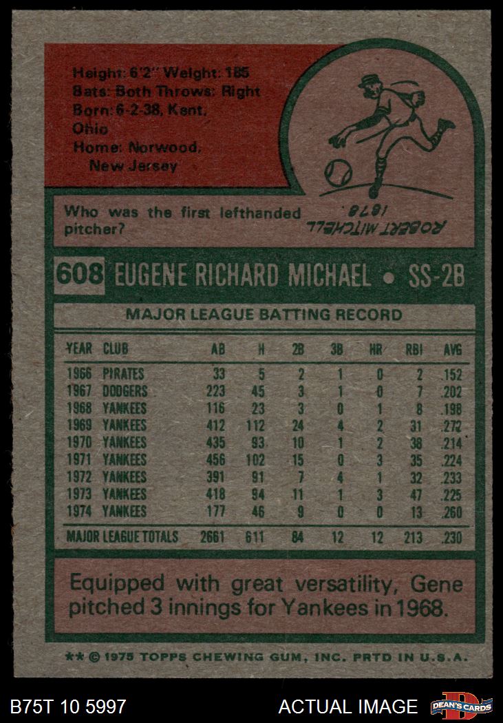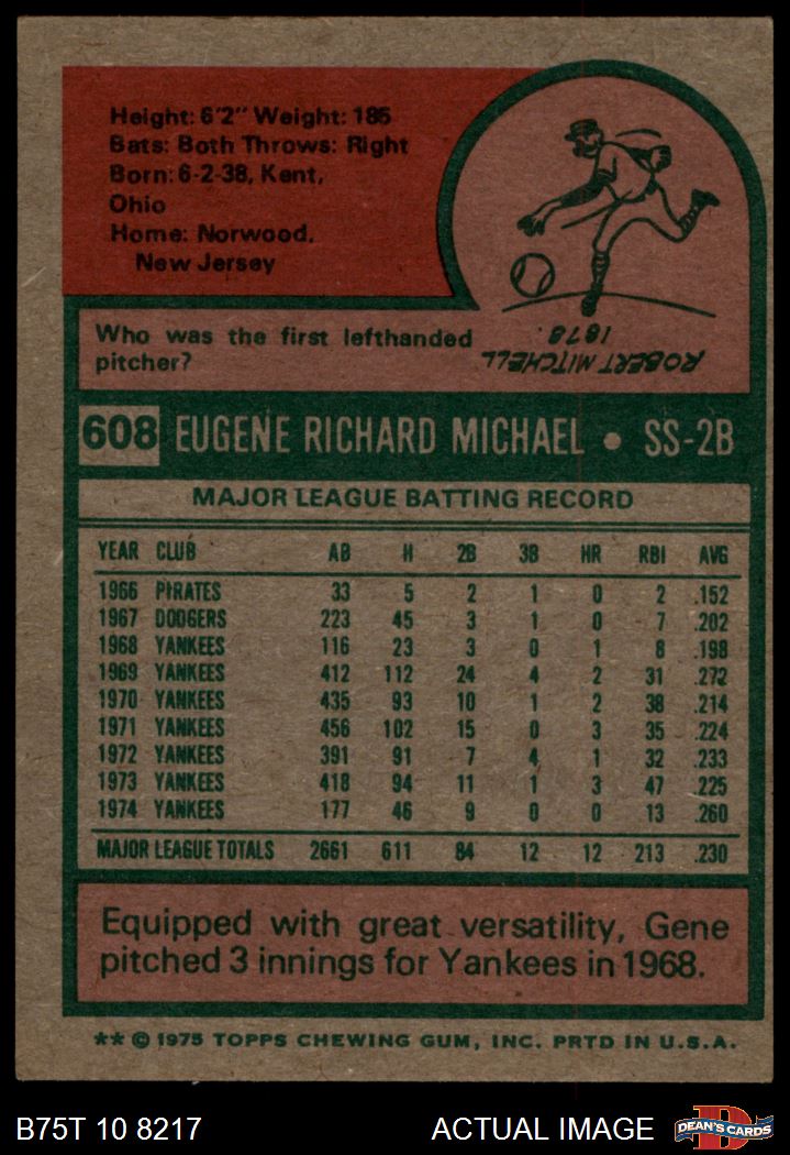 1975 Topps #608 Gene Michael 6 - EX/MT