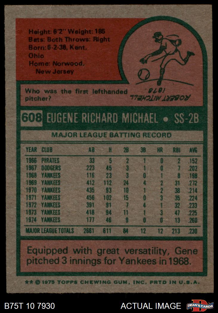 1975 Topps #608 Gene Michael 6.5 - EX/MT+