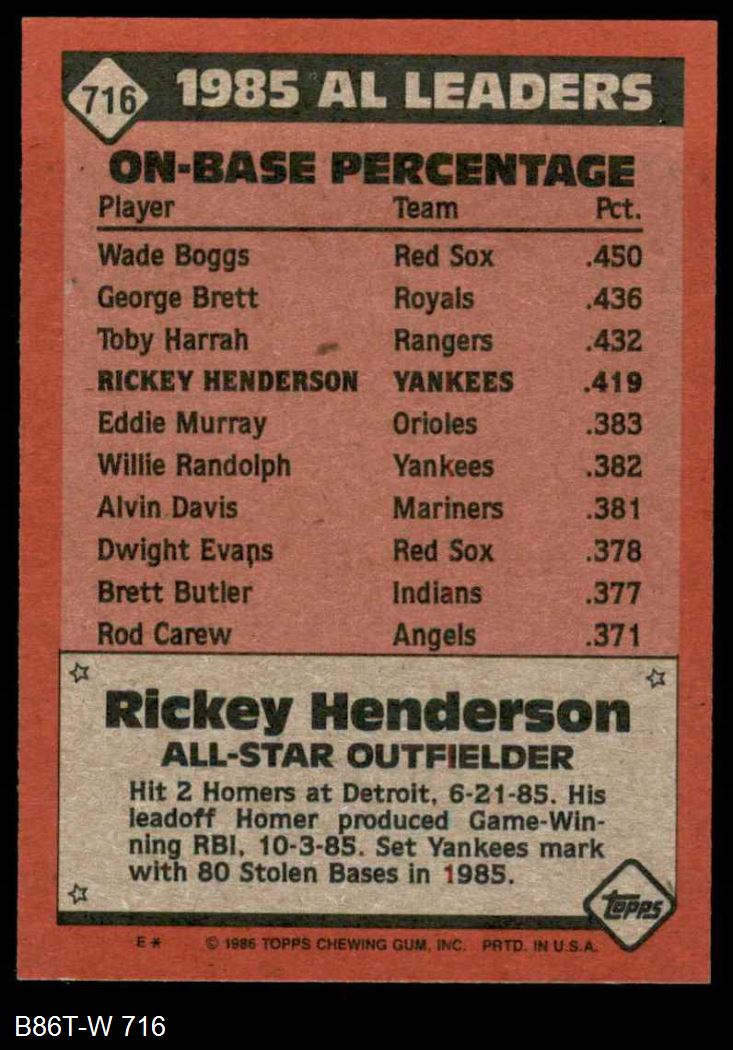 1986 Topps #716 - Rickey Henderson All-Star 8 - NM/MT
