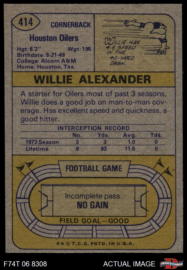 1974 Topps #414 Willie Alexander